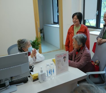 图五 老教授专家在亲和谷"健康服务中心"开展重阳节公益问诊。